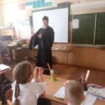 17 февраля в библиотеке СОШ 14 ст. Журавской прошла беседа настоятеля храма святой мученицы Татианы Николая Пелых с учениками 5-го класса.